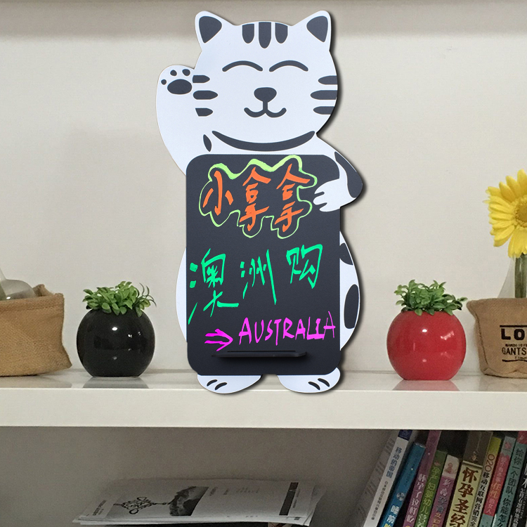 桌面白色招财猫造型小黑板