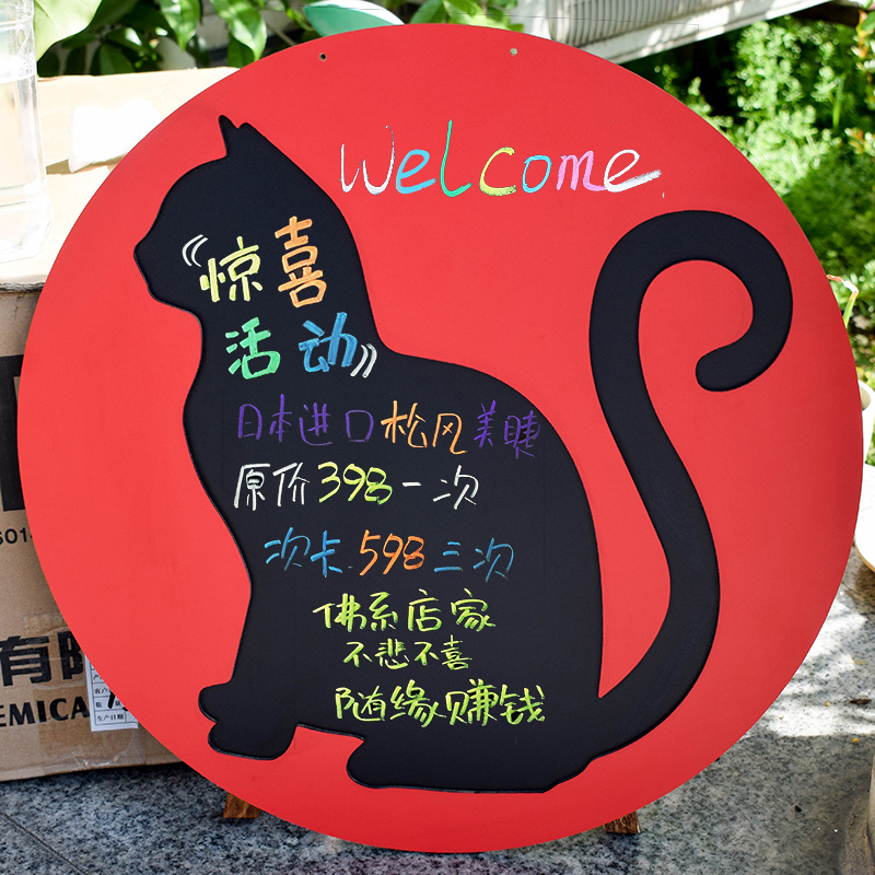 挂式圆形红框小猫造型黑板