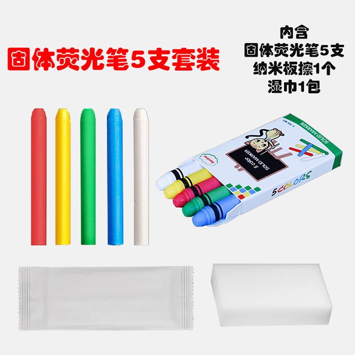 固体荧光笔5支装套装
