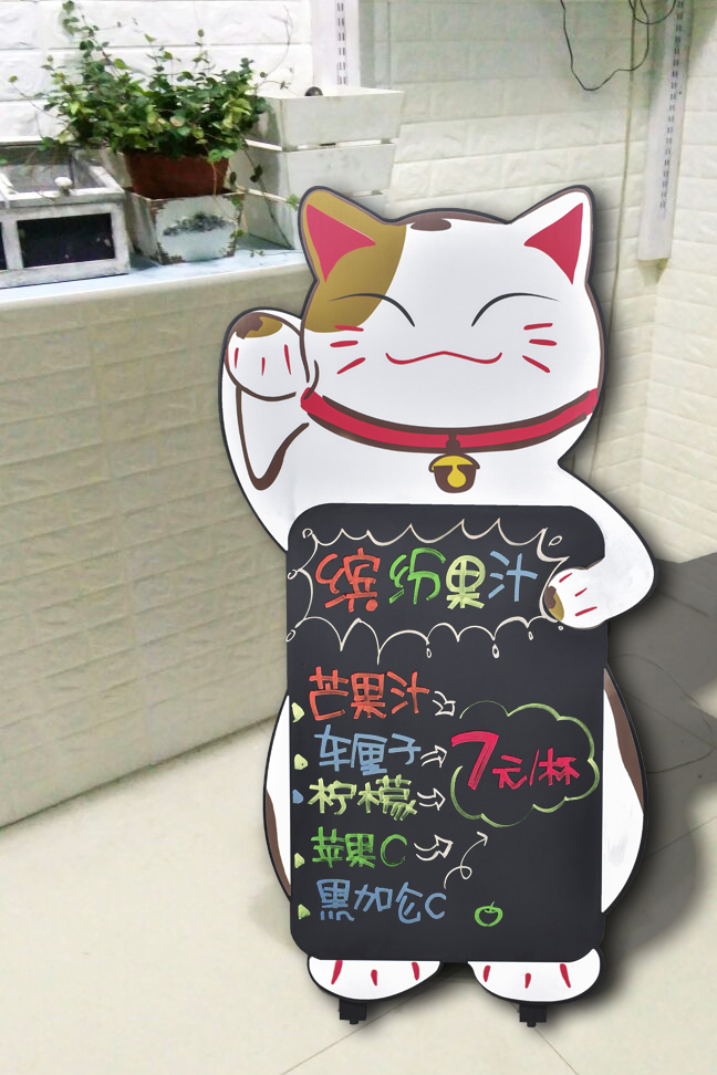 大号彩色招财猫造型立式黑板